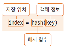 - 자료의 특정 값(키 값)에 대한 저장 위치를 반환해주는 해시 함수를 사용